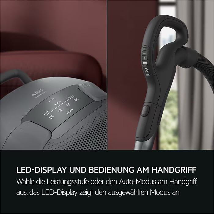 جارو برقی 220 وات آاگ AB81A2DG از نظر طراحی و کیفیت ساخت کاملا کاربر پسند تولید شده است. این محصول ظاهری شیک و مدرن دارد و بدنه ی آن به رنگ خاکستری طراحی شده است. مواد و متریال استفاده شده در بدنه ی این جارو برقی بادوام و بسیار مستحکم است و این اطمینان را می دهد که در استفاده ی روزانه کاملا مقاوم باشد و دچار هیچ گونه آسیب دیدگی و خوردگی نشود. این جارو برقی دارای وزن 5.7 کیلوگرم است و بدنه ی آن از پلاستیک مرغوب ساخته شده است که وزن آن را سبک و در عین حال مستحکم نگه می دارد. این دستگاه دارای دو عدد چرخ برای حمل و نقل راحت تر بر روی زمین و سطوح مختلف می باشد. چرخ ها به آرامی بر روی سطوح مختلف و فرش می لغزند که به سهولت کلی مانور می افزاید. دستگیره ی این جارو برقی به صورت ارگونومیک طراحی شده است تا فشار روی مچ و بازوی شما را کاهش دهد و باعث می شود حتی در طول جلسات تمیز کردن طولانی نیز به راحتی در دست نگه داشته شود. باید گفت که کنترل های روی دسته، دسترسی راحت به همه عملکردها را ارائه می دهند، در حالی که صفحه نمایش LED بزرگ که بر روی بدنه ی جارو برقی تعبیه شده است همیشه نمای کلی از تمام تنظیمات را ارائه می دهد. با این حال این جارو برقی ابعاد و بدنه ای کمی حجیم دارد که اگر فضای محدودی دارید ممکن است که نگهداری را کمی برای شما سخت کند اما به طور کلی می توان گفت که طراحی و کیفیت ساخت این محصول تعادل خوبی بین زیبایی و عملکرد را ایجاد می کند و آن را به یک افزودنی قابل اعتماد برای خانه های شما تبدیل می کند. این جاروبرقی دارای یک کیسه گرد و غبار از نوع s-bag با عملکرد فوق العاده طولانی و با ظرفیت 5 لیتر یا XXL است که به راحتی قابل تخلیه کردن و تمیز کردن می باشد. جارو برقی فوق دارای یک سیم برق به طول 8 متر است که با سطح و شعاع کاری آن می تواند به 11 متر برسد. در واقع سطح بالایی از راحتی کار و مانور بی دردسر را تضمین می کند که با آن می تواند بسیاری از اتاق ها را در یک حرکت بدون دردسر تعویض سوکت برق، تمیز و جارو کرد و دسترسی کامل را فراهم کرد. شیلنگ این جارو برقی نیز کاملا انعطاف پذیر است و به شما این امکان را می دهد تا آن را به راحتی در نقاطی که دسترسی به آن سخت است بکشید.