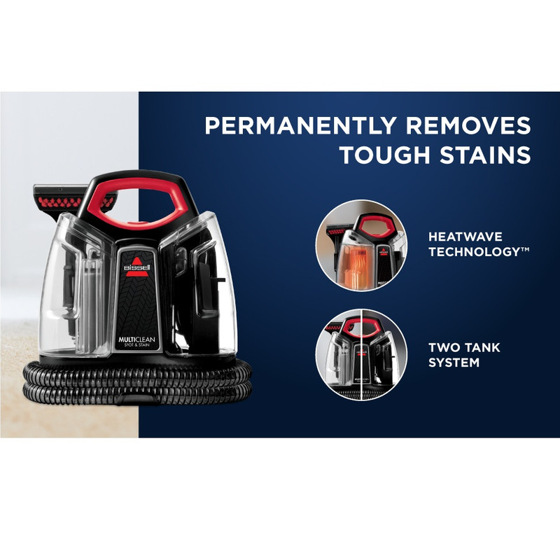 سیستم دو مخزن: BISSELL MultiClean Spot & Stain Carpet Cleaner شامل یک مخزن آب قابل جابجایی برای پر کردن و تخلیه آسان است. سیستم دو مخزن اجازه می دهد تا با آب تمیز، تمیز شود در حالی که کثیفی و در مخزن دیگری ذخیره می شود.