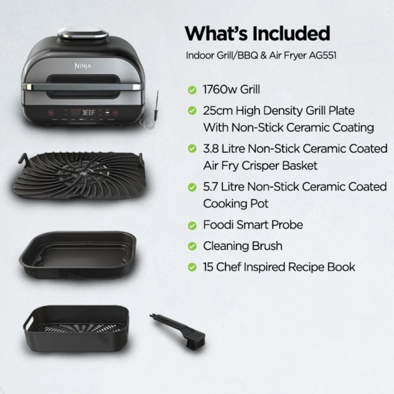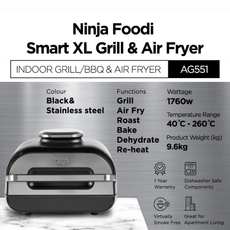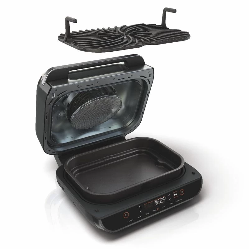کبابپز Ninja Foodi Smart XL که چیپسها را سرخ میکند، میپزد و با تکنولوژی هواپز طبخ میکند. نسل دوم با طراحی شیک جدید با سیستم آشپزی هوشمند و ظرفیت XL، به وعدههای غذایی پرجمعیت خانواده با فشار دادن یک دکمه به پخت کامل، از rare تاwell done، دست پیدا کنید. گریل NINJA FOODI SMART با عملکرد ۶ در ۱ شامل:۶ عملکرد پخت و پز همه کاره ازجمله Grill, Air Crisp, Roast, Bake, Broil, and Dehydrate با طیف وسیع دما فعال شده است.از دیگر ویژگی های جذاب این دستگاه که آنرا تبدیل به یک انتخاب مناسب برای کسانی که وقت زیادی ندارند کرده ویژگی تمیز کردن آسان آن است صفحه گریل با روکش سرامیکی، قابل جدا شدن، سبد و قابلمه پخت و پز همگی قابل شستشو در ماشین ظرفشویی هستند و به راحتی تمیز می شوند. کباب پز با ظرفیت بالا که دقیقاً با نتایج عالی پخت می شود بیش از یک گریل –با ۶ عملکرد پخت: سرخ کردن با هوا، پختن، برشته کردن، گرم کردن مجدد، آبگیری و گریل کردن سیستم آشپزی هوشمند – کاوشگر پخت دیجیتالی به شما امکان میدهد بدانید چه زمانی غذای شما کاملاً پخته شده است، دقیقاً همانطور که دوست دارید، غذای سرخ شده تا ۷۵ درصد چربی کمتر نسبت به روش های سرخ کردنی سنتی می باشد ، شامل قابلمه ۳.۸ لیتری، سبد کری سپر ۳.۸ لیتری، بشقاب گریل ۷۴۰ سانتی متری مربعی، برس تمیزکننده، راهنمای دستور پخت آشپز است. قطعات قابل شستشو در ماشین ظرفشویی سیستم آشپز هوشمند کاوشگر پخت دیجیتال دقیقاً دمای غذای شما را در حین پخت نظارت می کند، بنابراین نیازی به این کار ندارید! از موارد کمیاب تا خوب انجام شده، پایان خود را انتخاب کنید و گوشت و ماهی مورد علاقه خود را با کاوشگر در جای خود بپزید. هشدارهای صوتی به شما اطلاع میدهند که چه زمانی آماده برداشتن و استراحت قبل از ارائه است. بیشتر از یک گریل با ۶ کارکرد پخت و پز – سرخ کردنی در هوا، پختن، برشته کردن، آبگیری، گرم کردن و گریل کردن، غذاها و میان وعده های خوشمزه را برای کل خانواده ایجاد کنید. بدون نیاز به تلنگر با فناوری Cyclonic Air. از یخ زده بپزید. بشقاب گریل بزرگ ۷۴۰ سانتی متر مربعی تا ۶ همبرگر مناسب است. شامل قابلمه ۳.۸ لیتری و سبد کریسپر ۳.۸ لیتری. قابلیت میوه خشکن کن، سرخ کن ، گریل کردن و پخت و پز را دارد ، طول سیم ۹۰ سانتی متر ، بدنه ضدزنگ ، ولتاژ ۱۲۰ ولت ، آمپر ۶۰ آمپر ، توان ۱۷۶۰ وات ، قابل شستشو در ماشین ظرفشویی را دارد .